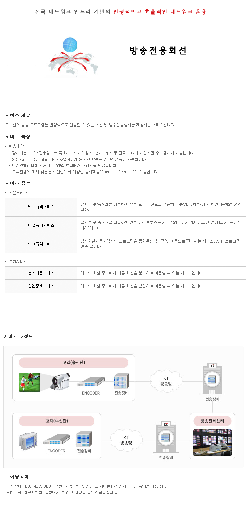 데이터회선 데이터회선일반전용회선방송전용회선CCTV 전용회선Kornetkornet expresskornet hotlinekornet game ExpressGiGA office KT기업인터넷 > 데이터회선 > 데이터회선 > 방송전용회선 방송전용회선