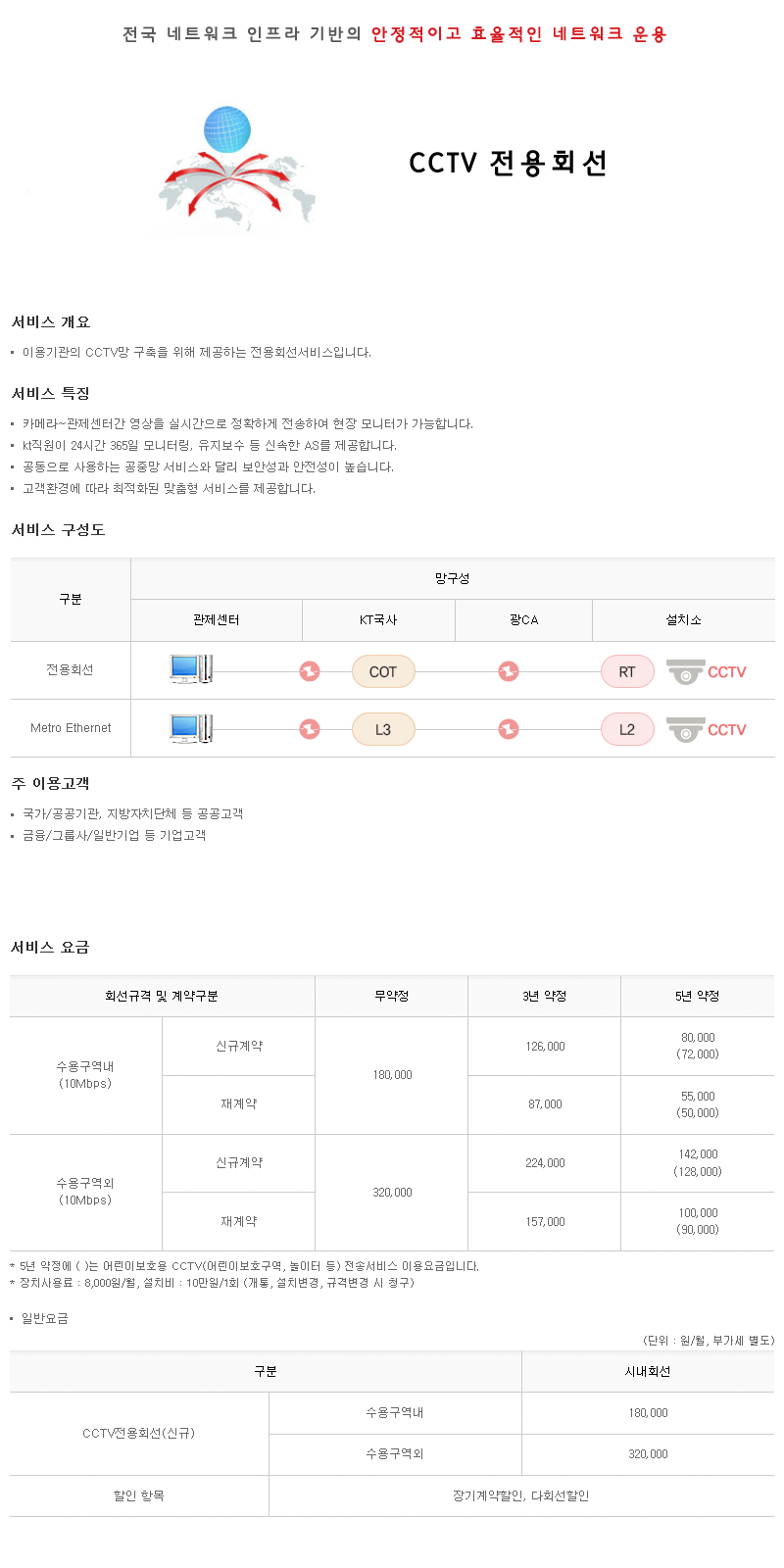데이터회선 데이터회선일반전용회선방송전용회선CCTV 전용회선Kornetkornet expresskornet hotlinekornet game ExpressGiGA office KT기업인터넷 > 데이터회선 > 데이터회선 > CCTV 전용회선 CCTV 전용회선